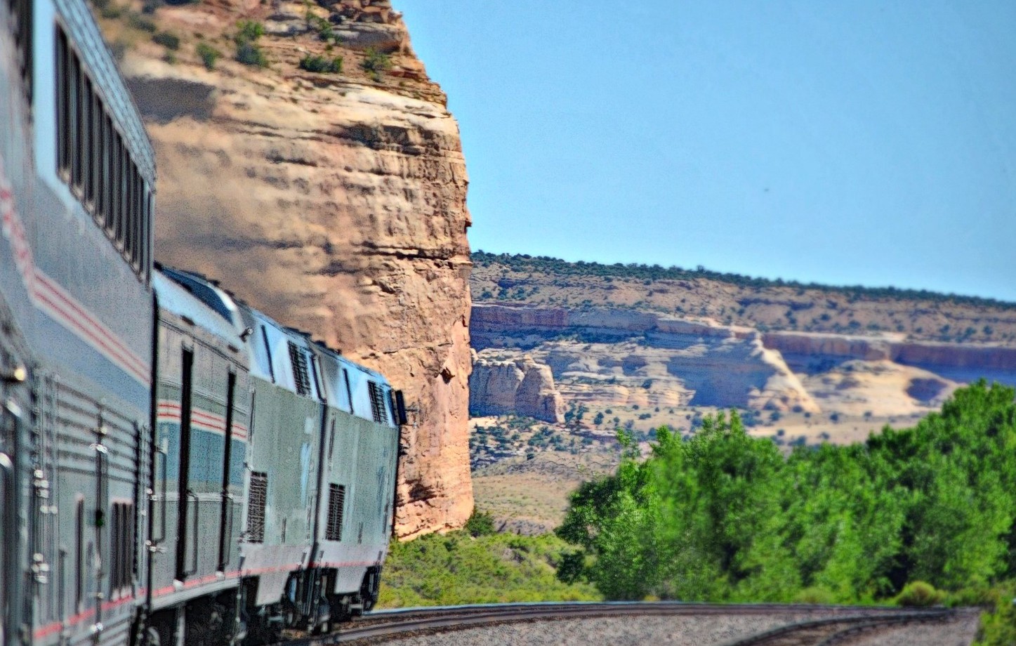 For a trip through the New Mexico and Arizona deserts, Sangre De Cristo Mountains, Apache Canyon and the Raton Pass on the Santa Fe National Historic Trail, plan a trip on the Southwest Chief. Trains on this route travel between Los Angeles and Chicago (43 hours), but you can also travel between Los Angeles and Kansas City to shorten the travel time.