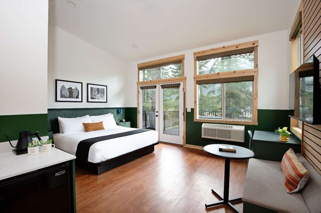 LOGE Glacier is a six-minute walk from the Essex Amtrak Station on Amtrak’s Empire Builder route. You can board this this train in cities including Seattle, Portland, Spokane, St. Paul, Milwaukee and Chicago. Travel time is 15.5 hours from Seattle and Portland, 23 hours from St. Paul and 31 hours from Chicago. Sleeping accommodations are available on the train if desired and include free meals, water and coffee.